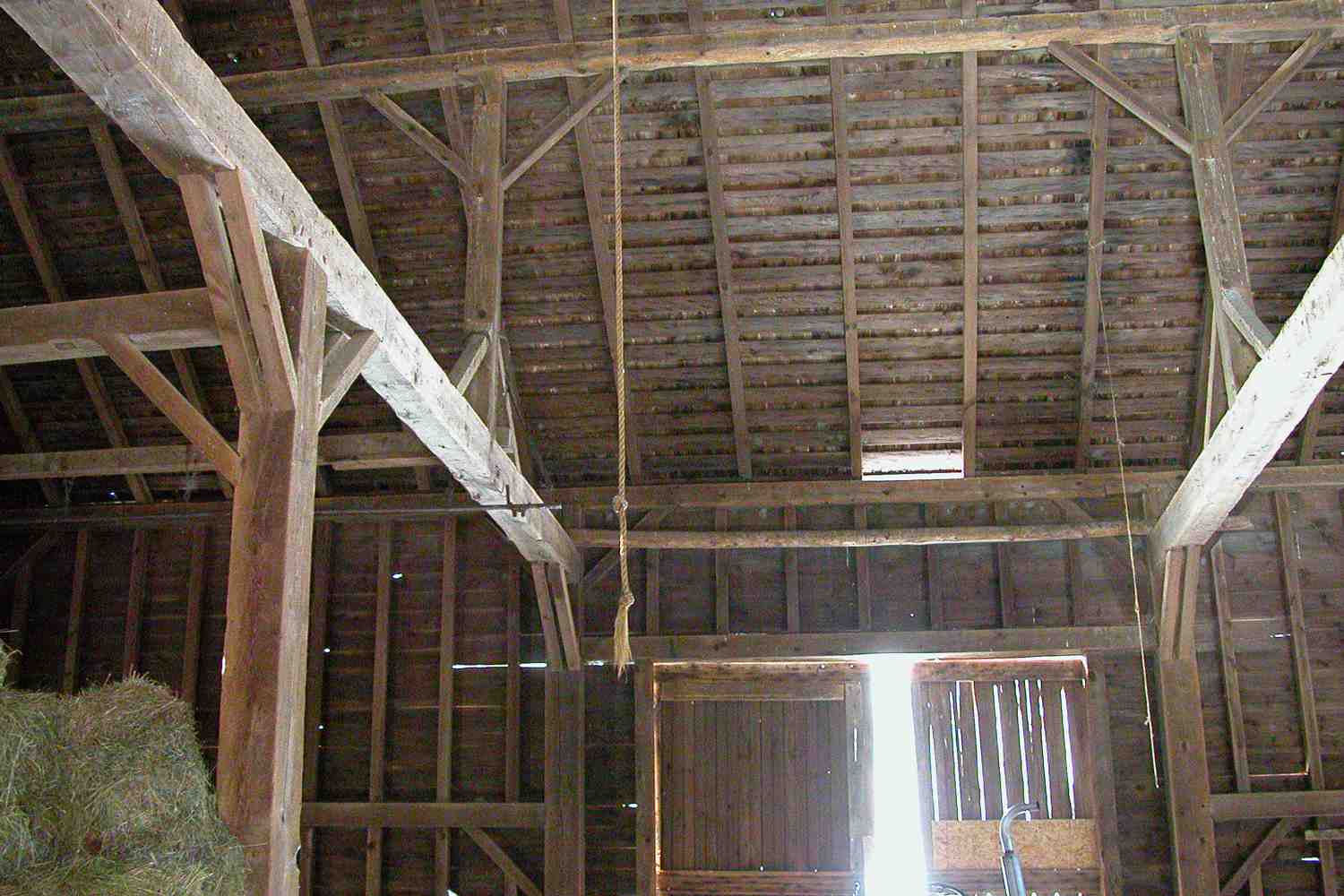 This huge, sawn-timber hay barn was originally built circa 1870. The flooring, ceiling and exterior siding are vintage reclaimed barn boards. The restored barn is now a guest house, garage and wine cellar for a residential estate in southwestern Connecticut.