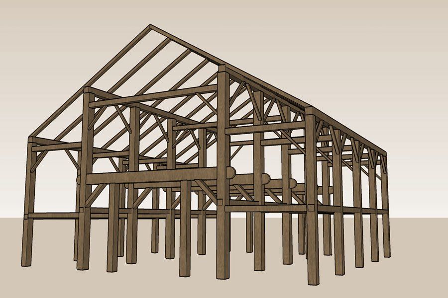 This barn was originally built in the Schoharie Valley of New York State at Hartman’s Dorf, a settlement of Palatine Germans founded by Hartman Winedecker in 1713, and is one of the few surviving examples of New World Dutch Barns.
