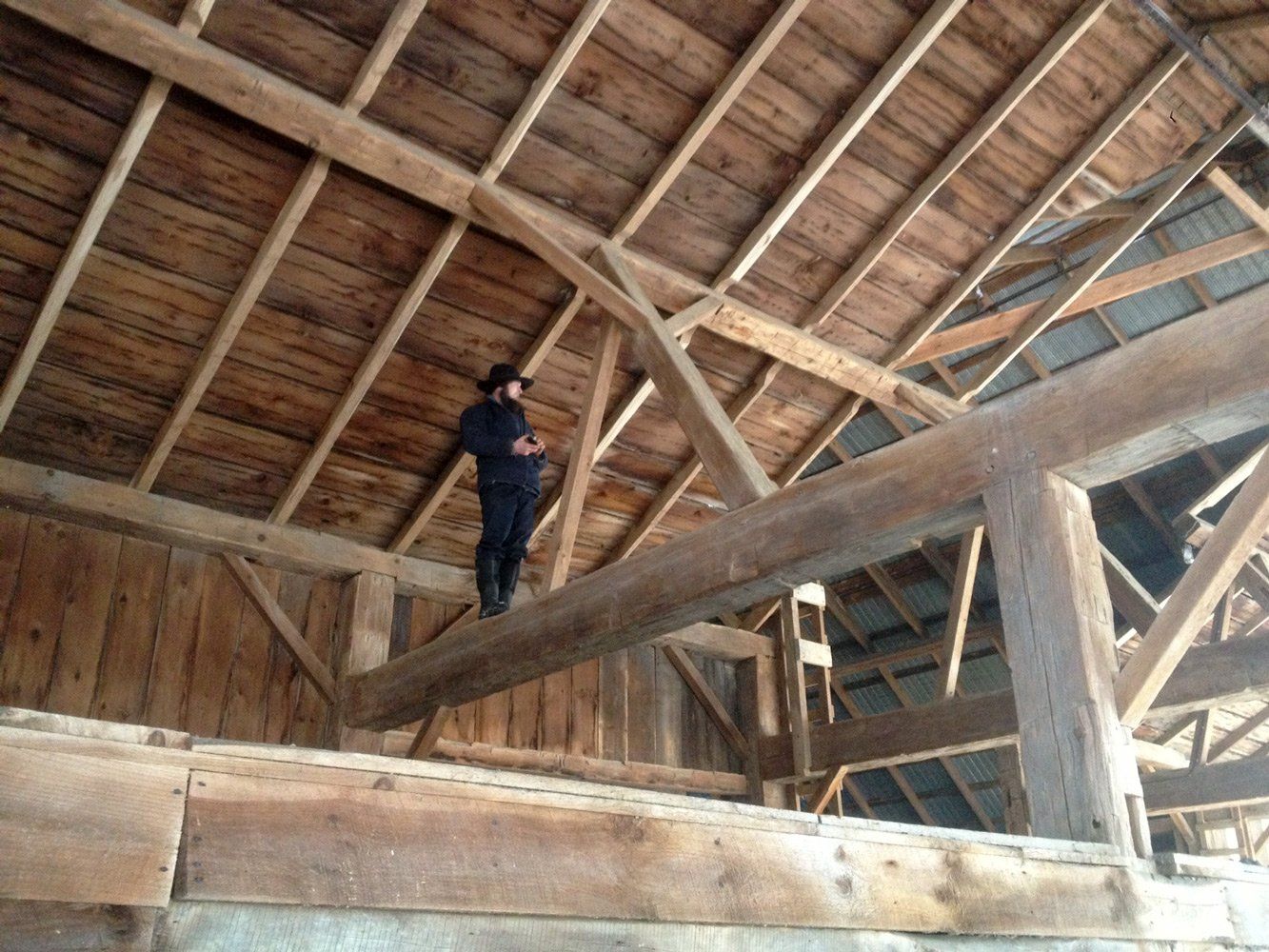 Each one of the barn’s bents is about 3,000 pounds—and raising barns as heavy as this one by hand, rather than using a crane and other heavy machinery, isn’t done anymore in America. So we thought what better way to kick off our new barn pavilion than with an old-fashioned “barn raising” like they would’ve done back in the 1800s to raise this thing up.